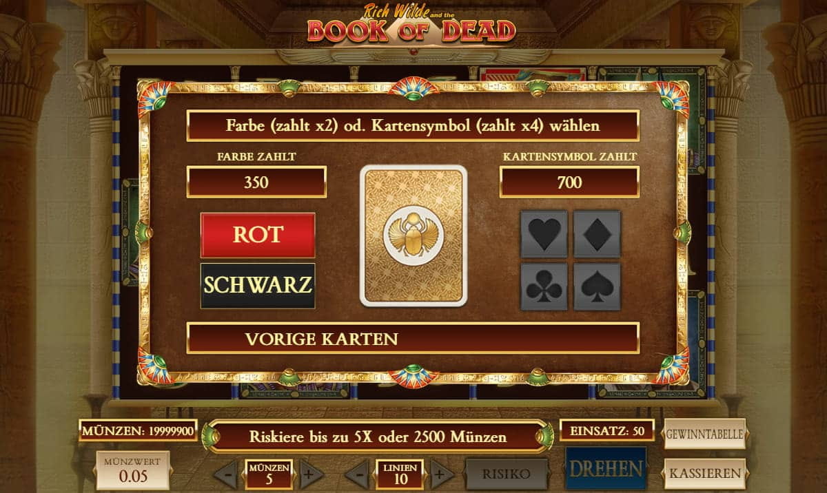 - Auch bei Book of Dead kannst du einen Doppeldrücker machen und somit dein Glück herausfordern.
