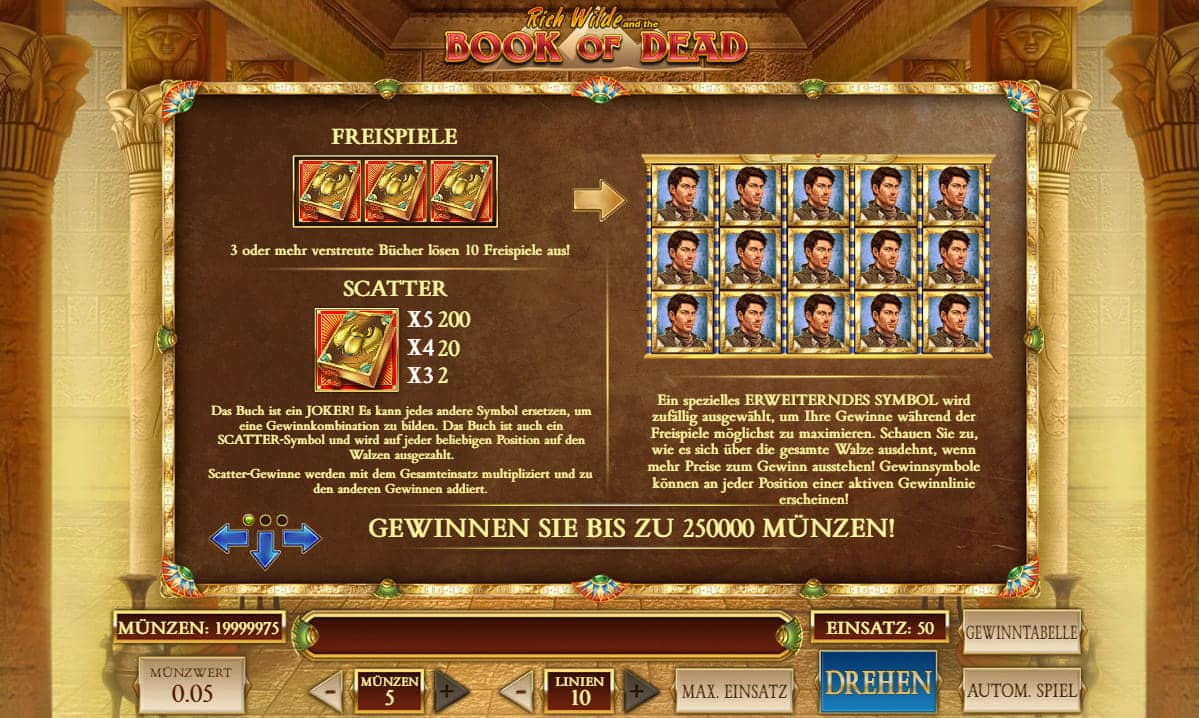 - Ja! So gut wie jede Internetspielhalle bietet seinen Nutzern einen Willkommensbonus an, der selbstverständlich auch für Book of Dead genutzt werden kann. Selbst zusätzliche Reload-Boni sind keine Seltenheit.