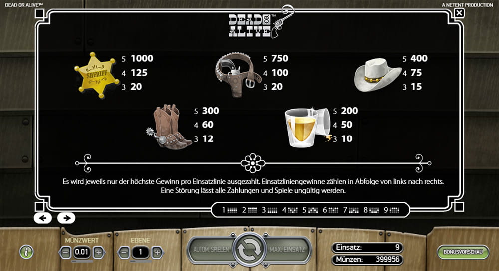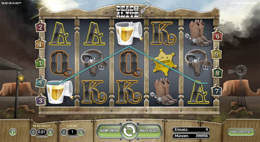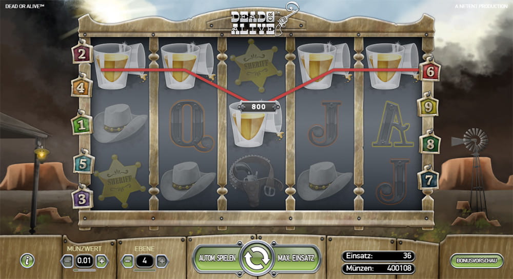 Der Hersteller NetEnt ist mit seinen Spielen in so gut wie allen Online Casinos vertreten. Solltest du dich also als Sheriff versuchen wollen, gibt es viele Gelegenheiten. Wir haben uns für dich einmal umgesehen und nach dem besten Dead or Alive Bonus Angeboten gesucht, die du hier finden kannst. Ein gutes und faires Willkommensangebot ist insofern wichtig, da es dein Startguthaben erhöht. Je höher dein Anfangskapital umso besser die Chancen bei der Gaunerjagd.