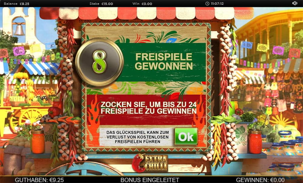 - Ja, bei Extra Chilli gibt es die Chance weitere Free Spins in der Freispielrunde zusätzlich gewonnen werden. Solltest du drei weitere Freispiel-Scatter Symbole erhalten landen weitere vier Free Spins verbuchen. Bei vier der Scatter Symbole bekommst du noch einmal acht Freispiele on Top.