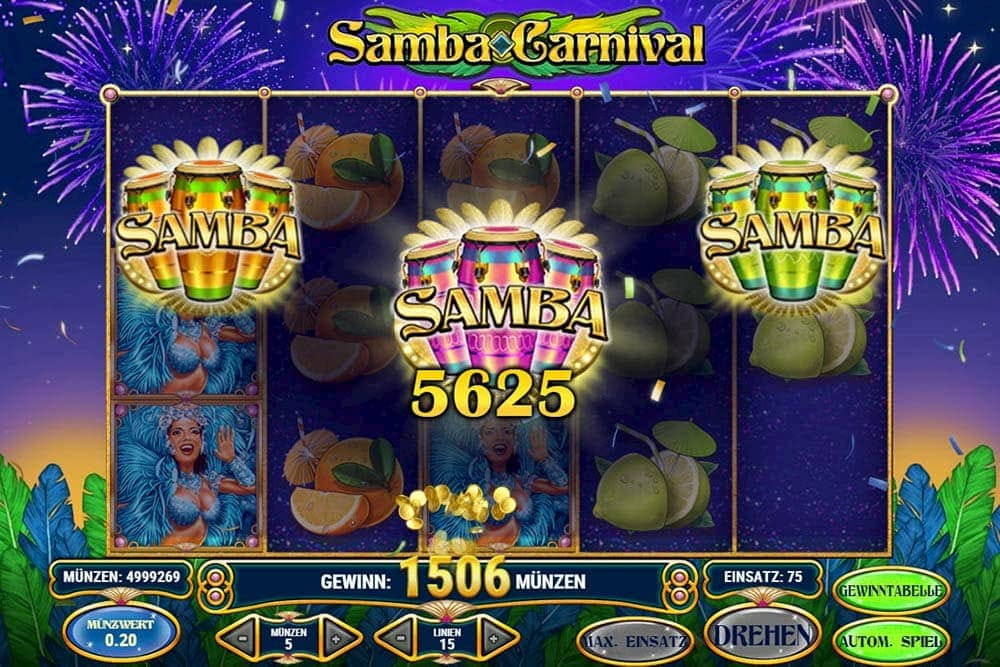 • Jeder Spieler, der innovative Slots mit hohen Spielspaß mag, sollte Samba Carnival unbedingt mal ausprobieren. Egal ob du mit hohem oder niedrigen Einsätzen spielst, die brasilianische Slotmachine ist unbedingt einen Versuch wert.