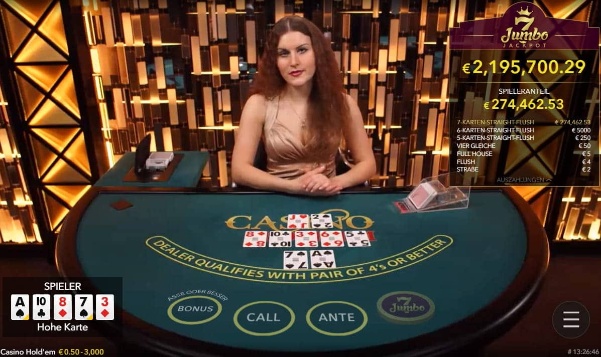 An erster Stelle sind hier die beiden Pokervarianten Casino Hold’em und Three Card Poker zu nennen. Bei der erstgenannten Variante ist der Spielablauf inklusive der zahlreichen Nebenwetten mit dem des regulären Spiels identisch. Bei der letztgenannten handelt es sich um eine rasante Abwandlung des Ausgangsspiels, bei der deine Hand aus lediglich drei Karten anstatt der ursprünglichen fünf besteht.
