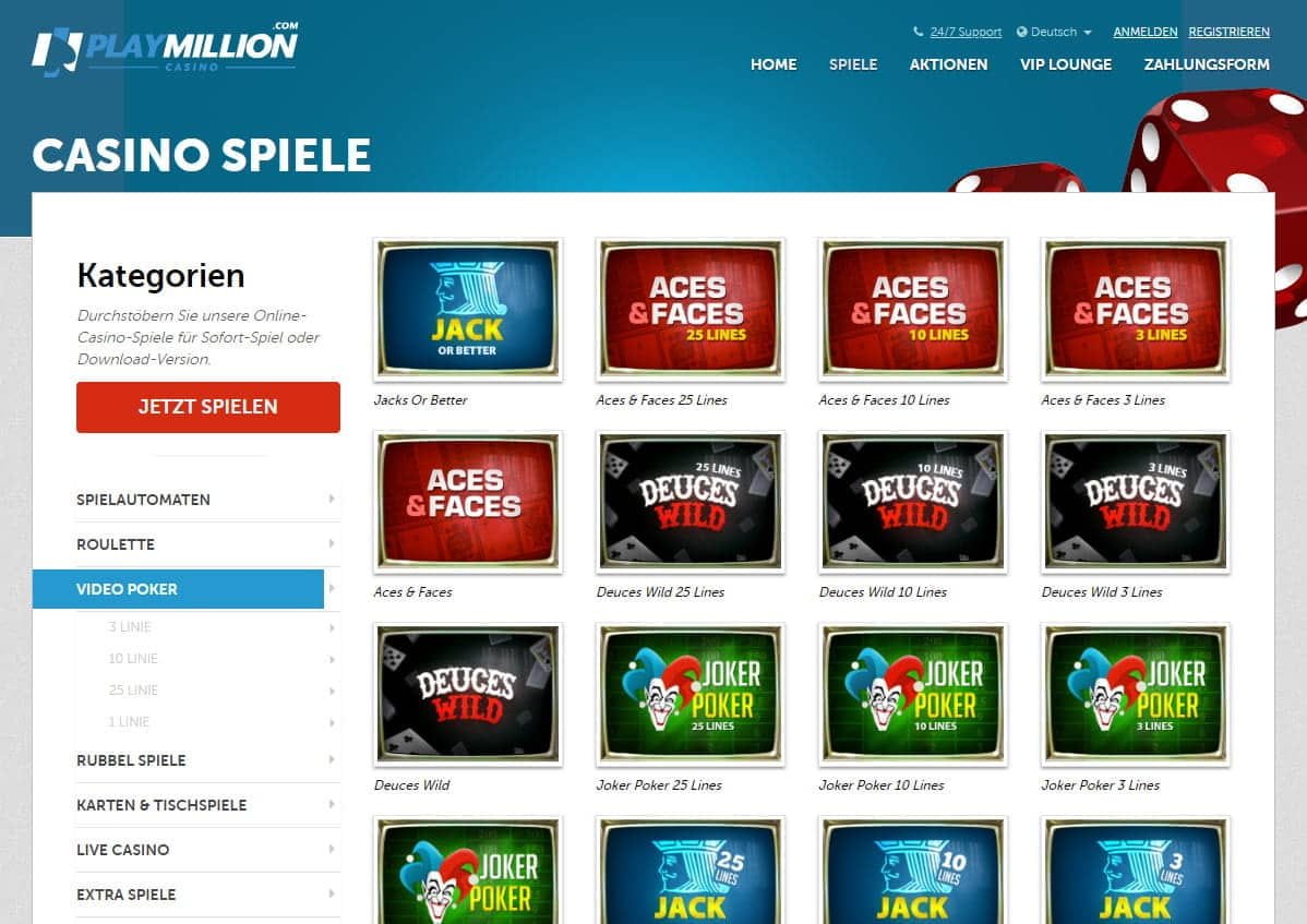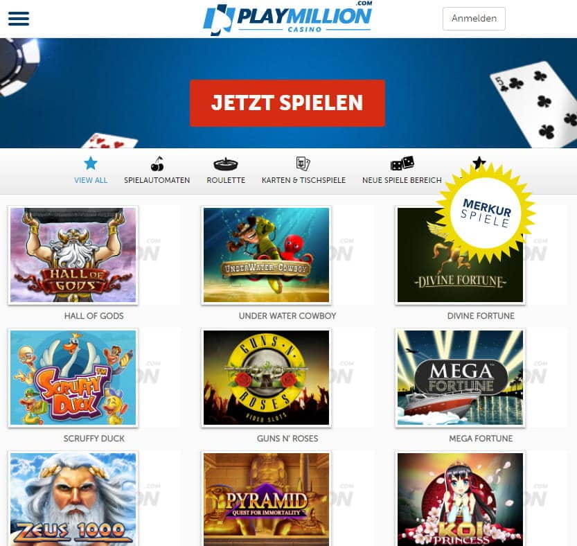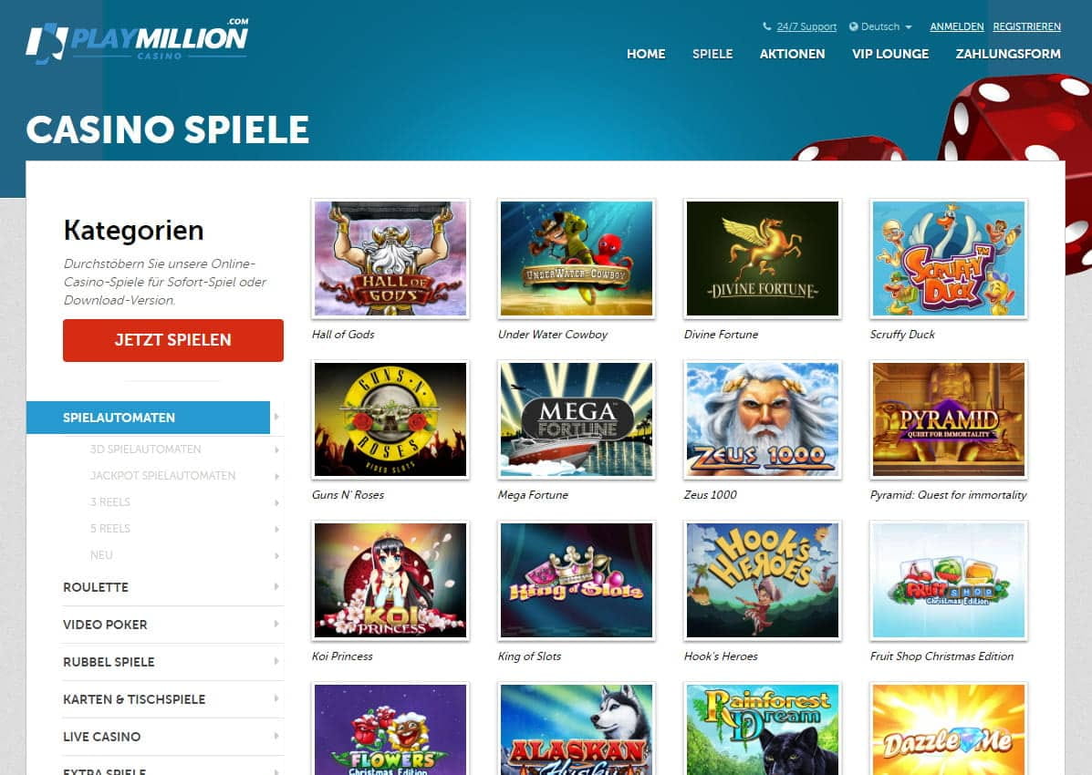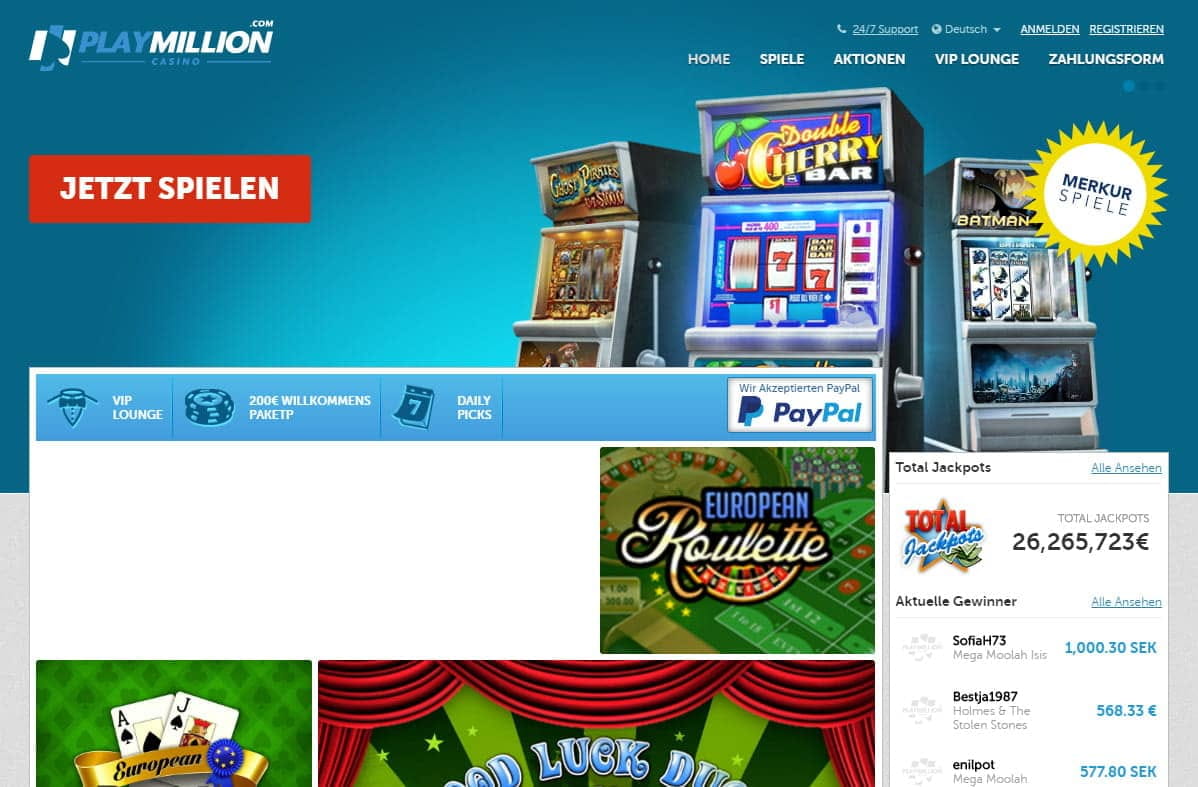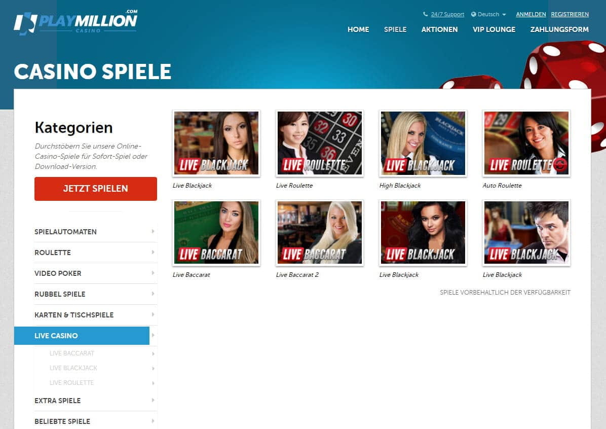PlayMillion basiert auf der hochklassigen Software von Skill on Net. Dementsprechend sind sämtliche populären Casino-Spiele abgedeckt. Besonders beliebt sind die Merkur Spiele wie zum Beispiel Doule-Triple Chance, Gold of Persia, Candy&Fruits, Super7Reels, Diamond-Casino und sogar einer der Spieler Favoriten El Torero. Geneigte Interessenten profitieren von einer breiten Auswahl, können munter zwischen Slot-Automaten, Roulette- oder Blackjack Casino Tischen Online wechseln. Im Stile großer Casinos bleibt keine Frage offen. Besonders eifrige Spieler können ihr Glück sogar im Live-Casino auf die Probe stellen. Dabei werden sie per Webcam in ein reales Casino übertragen und von einem menschlichen Croupier begrüßt. Noch echter geht es kaum!
