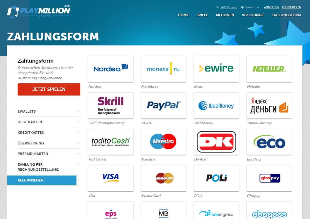 Die Zahlungsmöglichkeiten bei PlayMillion